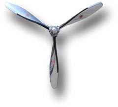 Propeller or Airscrew?Propellers have also been called airscrew in the past, but this term may be misleading, because a propeller does not move like a mechanical screw through a rigid medium. You don't call a wing knife or slicer because it also does not slice through the air in the direction of its inclined mean plane. Each section of a propeller (or of a wing) has a certain angle of incidence and is moving through the air at its unique angle of attack - both are independent. On the other hand, a mechanical screw or a knife moves through a rigid material exactly in the direction which is given by its pitch or angle of incidence - a screw with different pitches along its radius would get stuck, a propeller would not. |