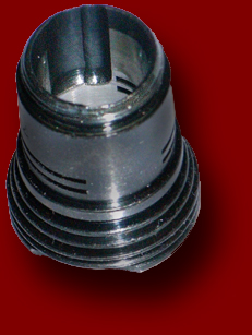 Medallion .09 R/C (1.5 cm³) Manufactured in 1988-1996 (#230 plus muffler #2640) Of course, the .09 could also be equipped with the patented adjustable muffler ring as shown here. These mufflers were available for all engines, from .020 to .15. Initially they consisted of a aluminum body, a steel cover disk on top and the adjustable steel band. Later models had a hex flange came with an additional aluminum exhaust tube. |